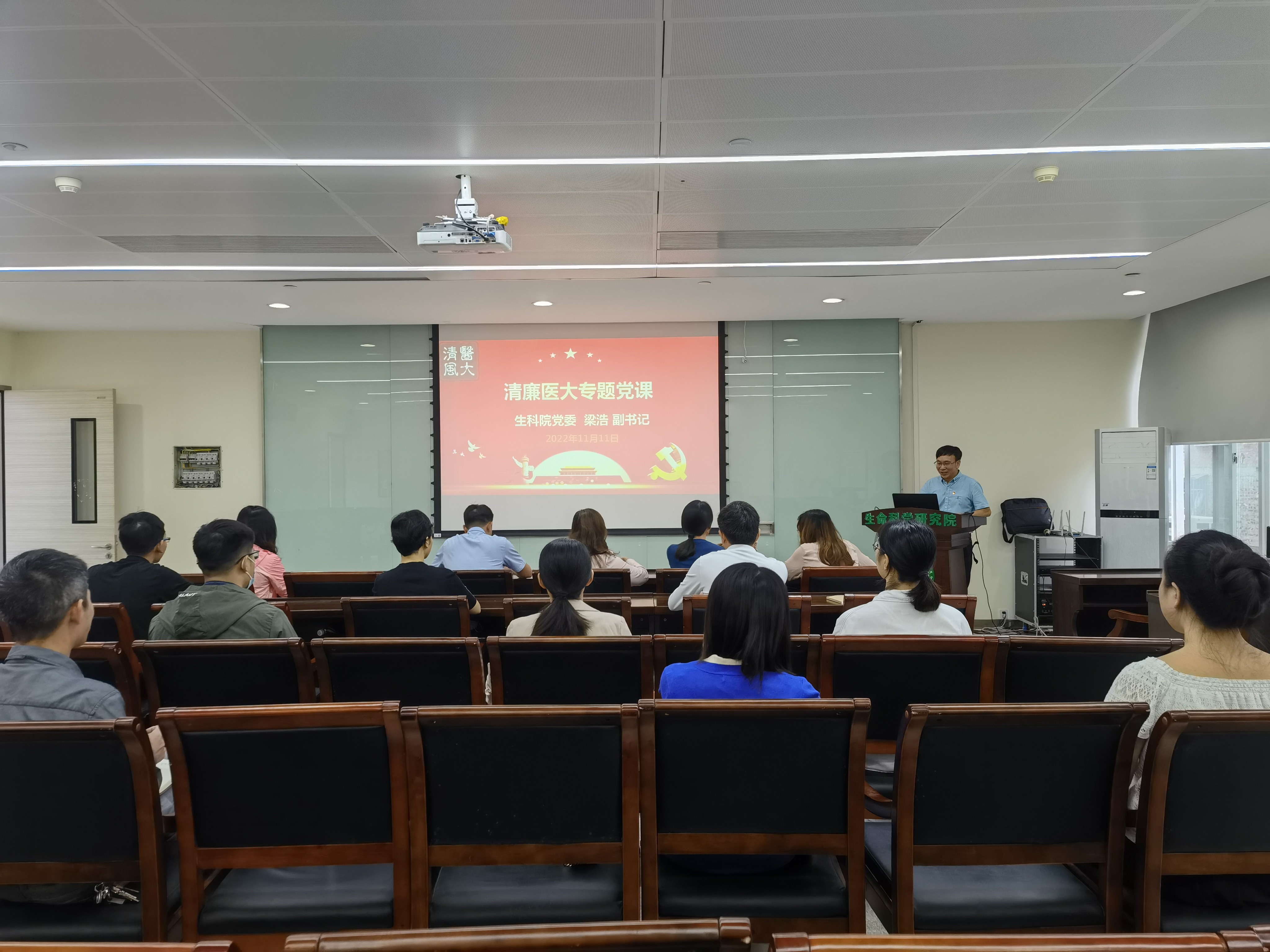 一是认真学习宣传贯彻党的二十大精神。采取多种方式传达学习、安排部署、组织培训、开展宣讲、推进落实,着力引导广大党员干部、师生员工全面学习、全面把握、全面落实党的二十大精神,把思想和行动统一起来,把智慧和力量凝聚到目标任务上来。二是认真开展新修订党章学习。各党支部将新修订的党章列入支部理论学习必学内容开展专题学习。为入党积极分子做题为“学习贯彻党章,争做合格党员”专题党课,引导入党积极分子和预备党员严守政治纪律和政治规矩,进一步提高党性修养、强化纪律意识。三是讲好“医大清风”廉洁党课。为了持续推进党员领导干部带头上好廉政党课,生科院领导干部在各支部共开展以“自觉廉洁从教,涵养育人清风”为主题廉政党课12场,通过讲授廉政党课,讲解廉政准则的相关规定,切实营造风清气正的良好政治生态。